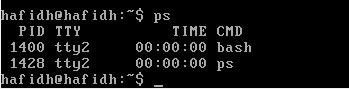 Instruksi ps (process status) digunakan untuk melihat kondisi proses yang ada. PID adalah nomor identitas proses. Proses TTY adalah nama terminal dimana proses tersebut aktif. STAT berisi S (sleeping) dan R (running). COMMAND merupakan instruksi yang digunakan $ ps